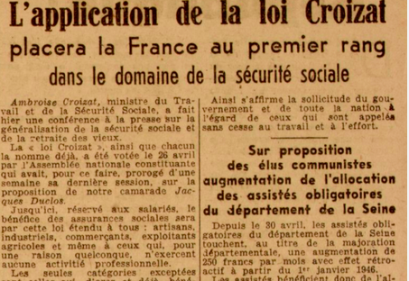 En 1944, le CNR prend position pour « un plan complet de sécurité sociale, visant à assurer à tous les citoyens des moyens d’existence dans tous les cas où ils sont incapables de se les procurer par le travail, avec gestion appartenant aux représentants des intéressés et de l’État » (c’est nous qui soulignons). Cette formulation évoque l’État-providence avec un système national de santé gratuite géré par l’État tel qu’il sera mis en œuvre en 1948 en Angleterre en application du rapport Beveridge. Ce n’est pas ce qui a été appliqué en 1945 en France, pour deux raisons majeures : 1) L’État a été discrédité par Vichy, il est à reconstruire alors que les organisations syndicales liées à la Résistance sont puissantes ; 2) La médecine libérale historique est hostile à toute étatisation. Cette hostilité remonte à 1793, date de la création par la Révolution des officiers de santé dont les médecins diplômés n’auront de cesse de combattre l’existence et finiront par obtenir la suppression en 1892. La Sécurité sociale est donc créée en 1945 selon le modèle allemand de caisses dit « bismarckien ». La Sécu est un organisme de droit privé, indépendant de l’État, financé par des cotisations payées par les salariés et les patrons et géré par les partenaires sociaux. Mais le grand patronat français, largement discrédité en raison de sa collaboration avec l’occupant, devra à la Libération se contenter d’un quart de la représentation au conseil d’administration, tandis que les trois quarts reviennent aux confédérations syndicales ouvrières. La CTFC, opposée au caractère obligatoire de l’adhésion à la Sécurité sociale, boycotte les premières élections et laisse toute la place à la CGT. À la différence de l’Allemagne, les syndicats de médecins libéraux français refusent aussi de participer à la gestion des caisses. Contre l’État, ils sont également opposés à « Madame LACAISSE » qui, selon eux, veut les fonctionnariser. Finalement, contrairement à la déclaration du CNR de 1944, la Sécurité sociale ne couvre pas tous les citoyens mais seulement les salariés. Il faudra attendre la création de la CMU en 1999 par Martine Aubry pour généraliser à tous les citoyens la prise en charge par l’Assurance maladie, jusque-là réservée aux seuls salariés. L’importance des indemnités journalières dans les dépenses de santé de l’après-guerre légitimait pleinement la place de la démocratie sociale dans la gestion de la Sécu, comme c’est logiquement le cas pour les accidents du travail ou l’assurance chômage. À cette époque, il n’y avait ni transplantations d’organes, ni services de réanimation ou unités de soins intensifs, ni dialyse rénale…