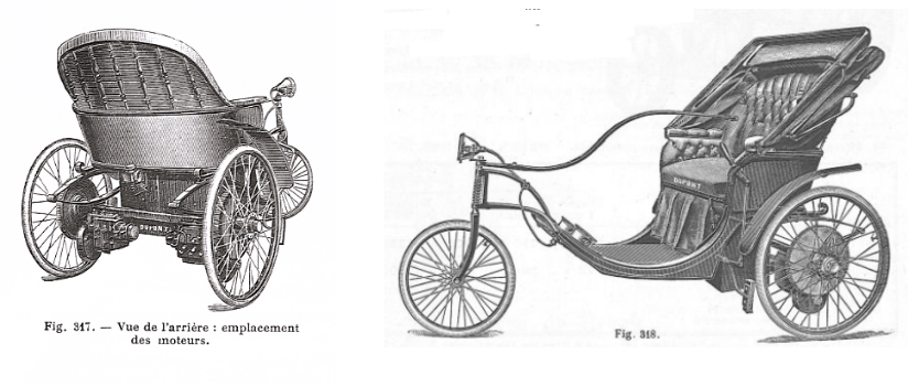 « Cette voiture, d’une construction absolument nouvelle, est légère, bien suspendue sur de bons et solides ressorts, d’une solidité parfaite et d’un roulement très doux ; son actionnement est fort simple et sa direction est très facile, ce qui la met à la portée de toutes les mains. Mécanisme très doux et très régulier, fonctionnement sans bruit, et permettant de faire d’assez longues promenades ; un parcours de 40 à 50 kilomètres peut être accompli sans recharge. Roues en acier, rayons tangents, cerclées de caoutchoucs pneumatiques. Moyeux à billes. Ailettes garde-crotte pour les grandes roues. Frein à main ou à pied à volonté. Rhéostat, pour mise en marche, placé à droite ou à gauche suivant demande. Capote mobile, en toile, articulée. Garniture crin pur. Couverture cuir. »